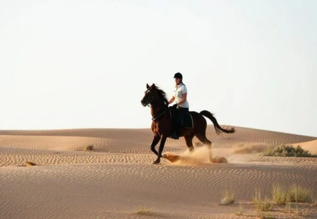 Dubai çölünde gerçekleşen bu özel at binme deneyimi; doğayla iç içe, sakin ve eşsiz bir tur arayan misafirler için hazırlanmıştır.