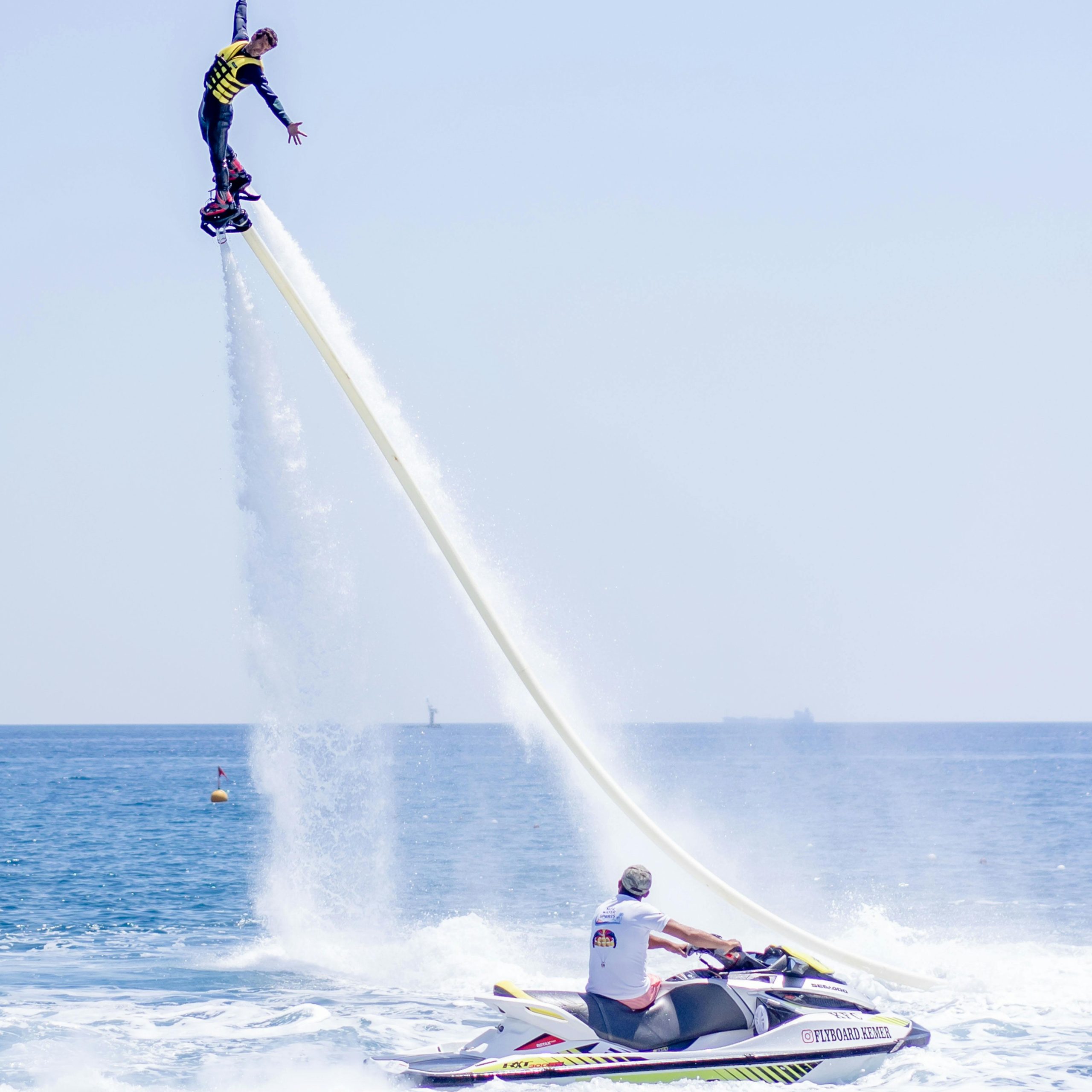 Flyboard, denizin üzerinde yükselerek havada süzülme ve akrobasi yapma fırsatı sunan adrenalin dolu bir su sporudur.